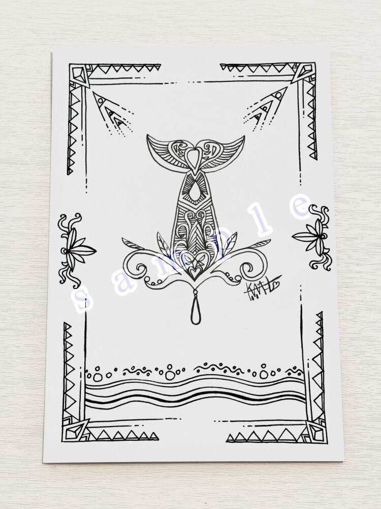 ペン画「ホエールテイル」はがきサイズ
