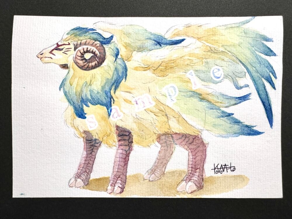 水彩画「もふもふ幻獣」はがきサイズ
