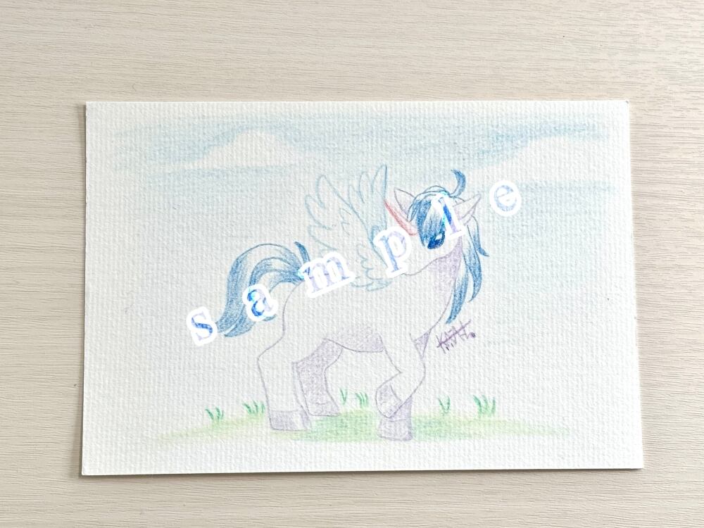 色鉛筆画「おさんぽ天馬」はがきサイズ